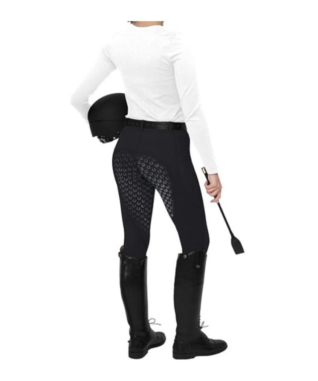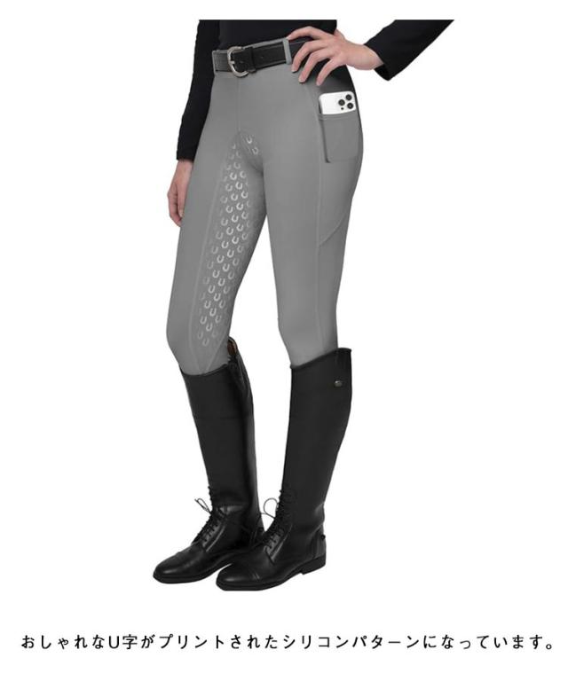 | ハイウエストタイプの女性用シリコンキュロットです。 伸縮性が高く通気性に富んだ柔らかなストレッチ素材で、体のラインに合わせて柔軟にフィット。お尻から足元にかけてグリップ力の強いシリコン素材が、騎乗時の安定感を大幅にアップさせてくれます。 おしゃれなU字がプリントされたシリコンパターンになっています。 足首部は脱ぎ履きしやすいスパッツ素材となっています。 | |