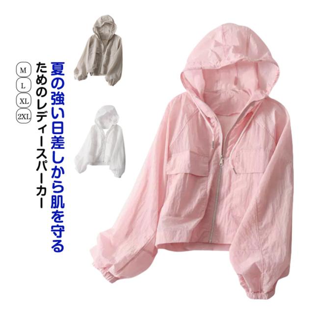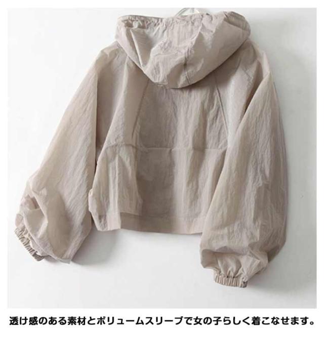 フード付き カーディガン パーカー ショート丈 軽量 アウター ジップアップ パフスリーブ かわいい UVカット 防風 薄手 冷感生地 日焼け防止 紫外線対策 冷房対策 無地 レディース 撥水 シアー シースルー おしゃれ カジュアル パーカー 春 夏