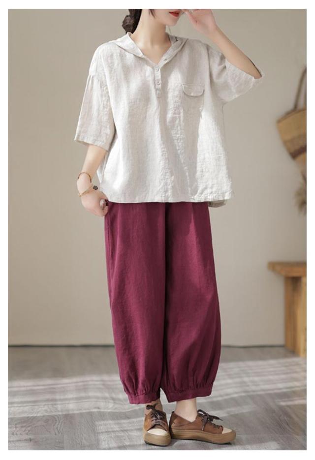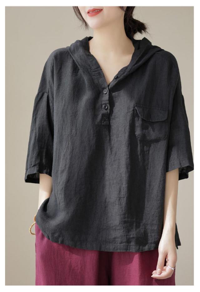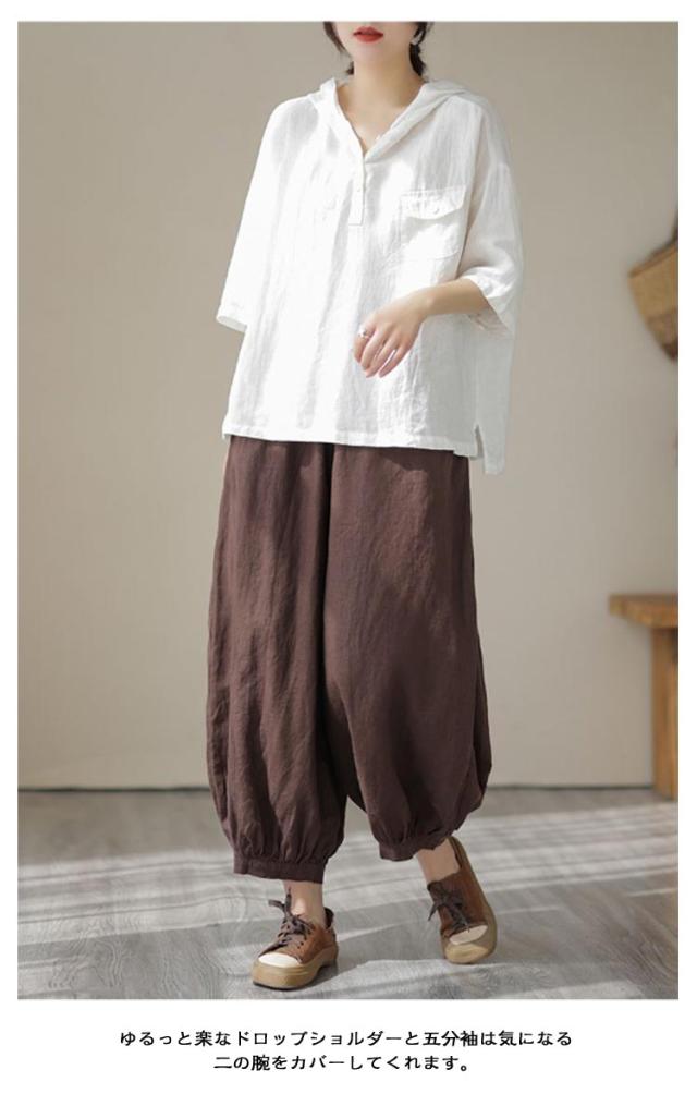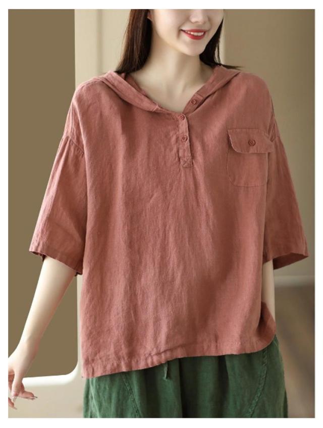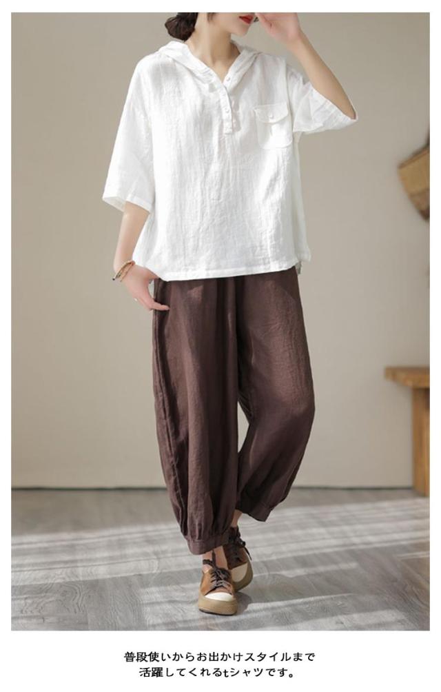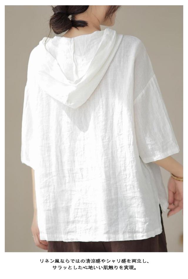 半袖 トップス 着心地 Tシャツ リネン風 ブラウス 半袖 パーカー フード付き 夏 シャツブラウス 綿麻風 春 涼しい 五分袖 長袖 大人 ゆったり 体型カバー カジュアル ナチュラル サマーパーカー