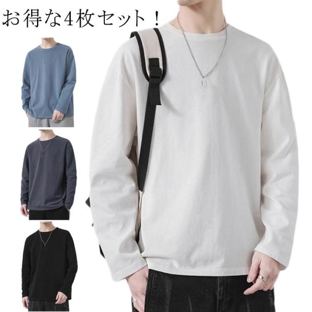 4枚セット tシャツ ロンT 長袖 メンズ 丸首 春 ゆったり Tシャツ 大きいサイズ 秋 無地 カットソー クルーネック インナーtシャツ 無地 シンプル ロングtシャツ シンプル 重ね着 4枚セット 秋 秋服 秋物 秋冬