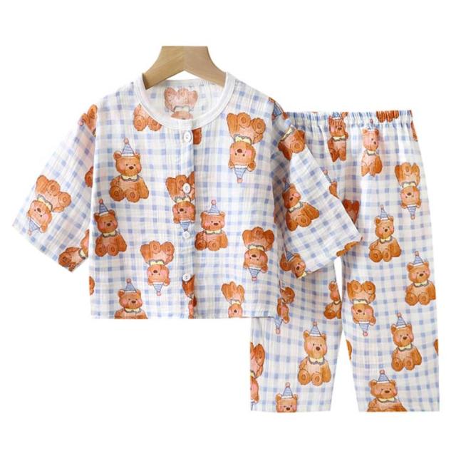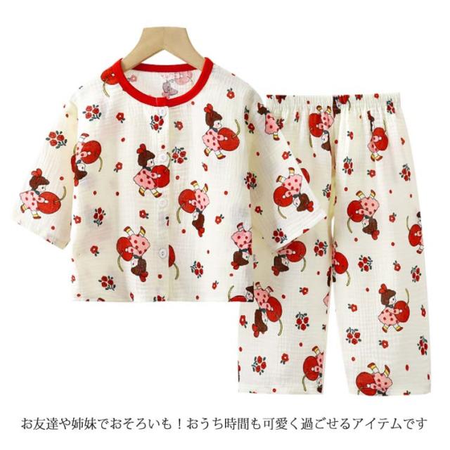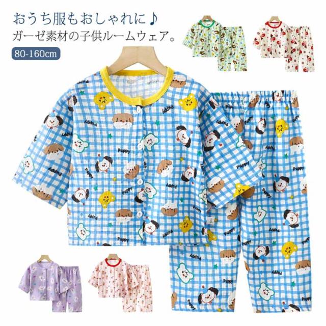 キッズ 女の子 長ズボン ガーゼパジャマ かわいい 上下セット 長袖 パジャマ 吸水速乾 送料無料 子ども 総柄 ベビー 子供服 ガーゼ コットン 男の子 ゆったり 送料無料 前開き 通気性 部屋着 ロングパンツ 春 夏 秋 80 90 100 110 120 130 140 150