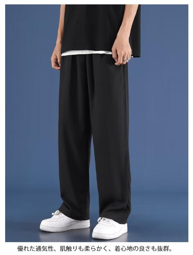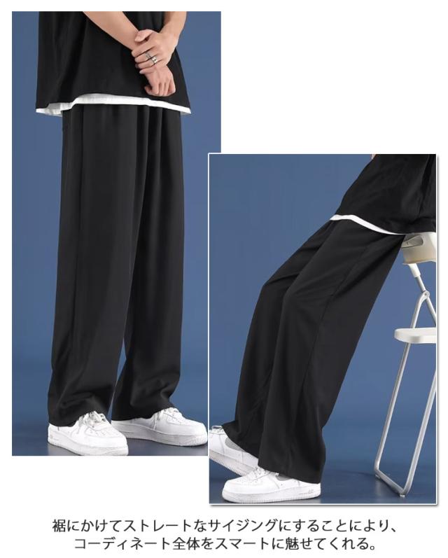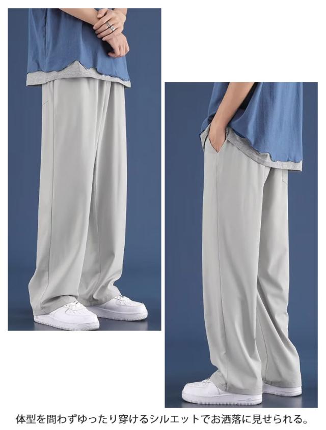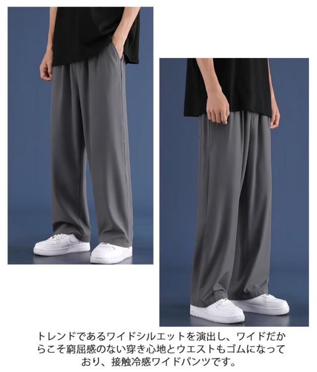 夏用 韓国ファッション メンズ 冷感パンツ ストレートパンツ ゆったり メンズ 涼感 ズボン 接触冷感 清涼 イージーパンツ 涼しい ワイドパンツ シェフパンツ アイスシルクパンツ ボトムス 大きいサイズ カジュアル ロングパンツ スポーツ 2枚セット ストリート おしゃれ