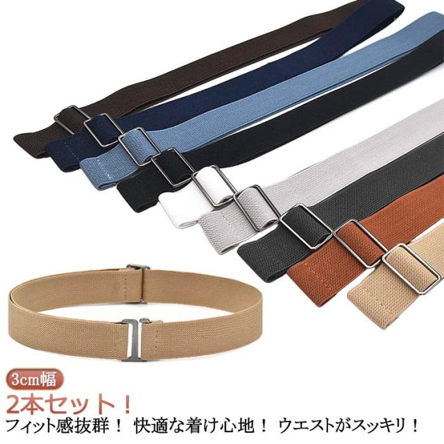 穴なし 無段階サイズ調整可能 ゴムベルト 30mm幅 伸縮ベルト 2本セット 3cm幅 メンズ 男女兼用 キッズ 子供 こども 伸縮ベルト ゴムベルト 付け外し簡単 フリーサイズ(調整可能) レディース ゴムベルト 無地 ベルト ゴム メンズ