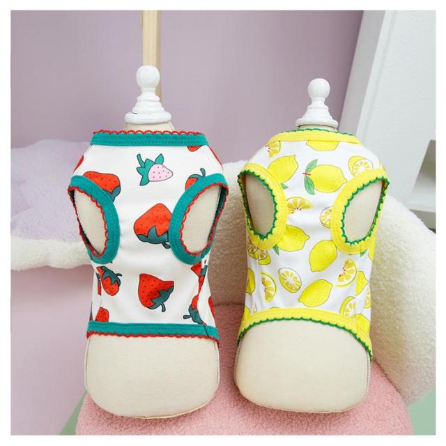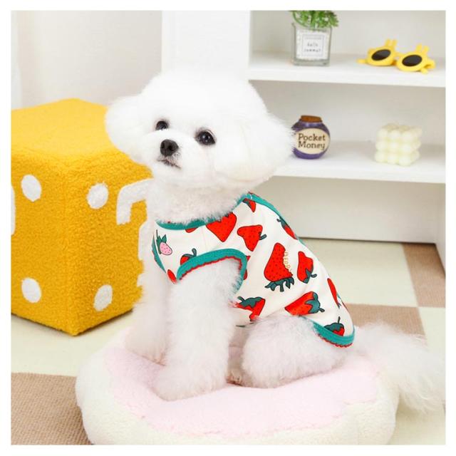 背中開き 犬服 女の子 インスタ映え レモン柄 タンクトップ 可愛い お洒落 いちご柄 着せやすい お部屋着 柔らかい 暖かい 抜け毛防止 男の子 犬服 ベスト 女の子 男の子 洋服 ペット服 衣装 プレゼント