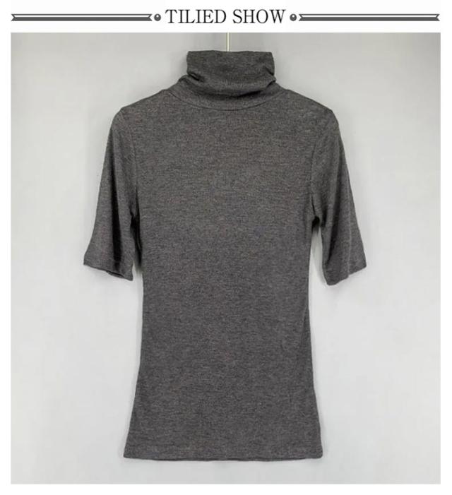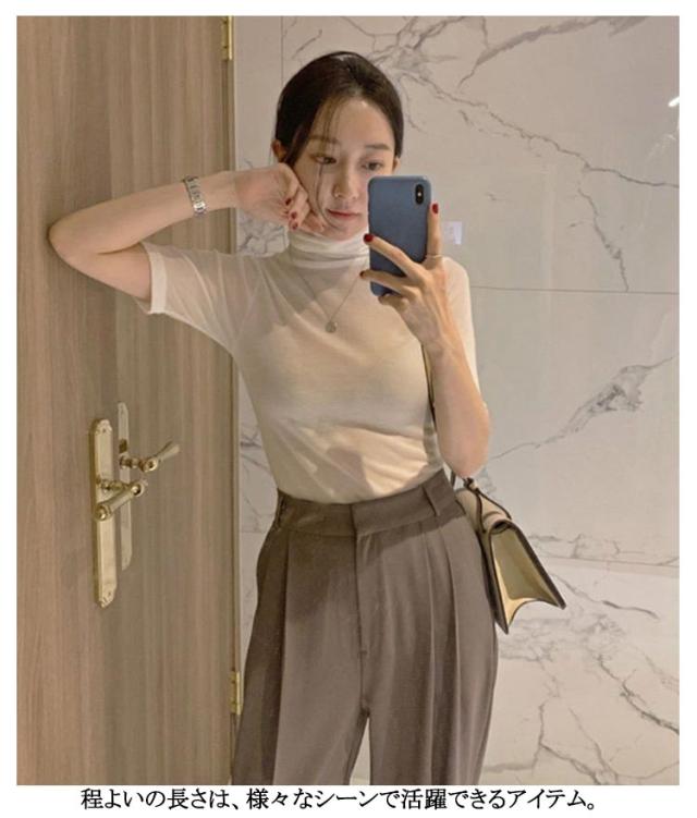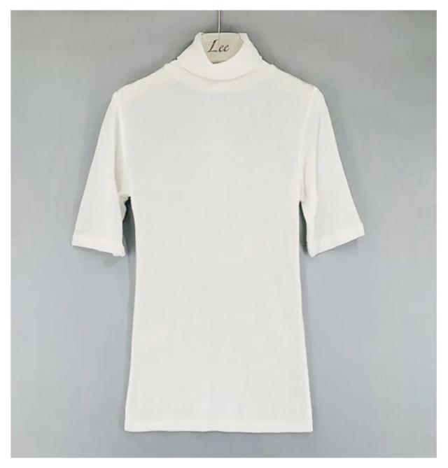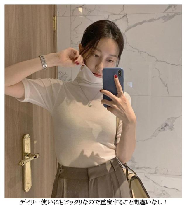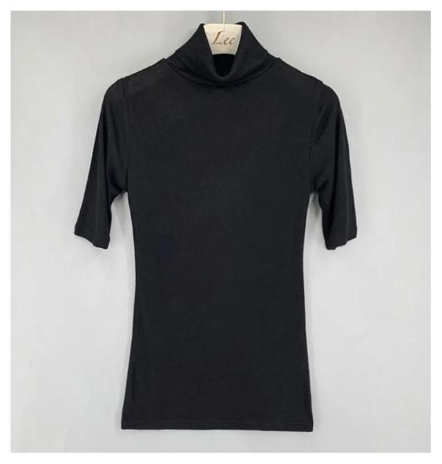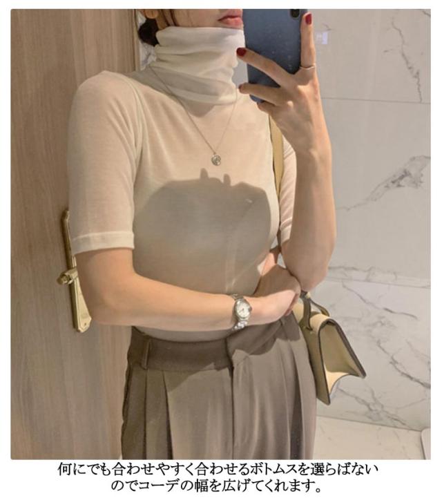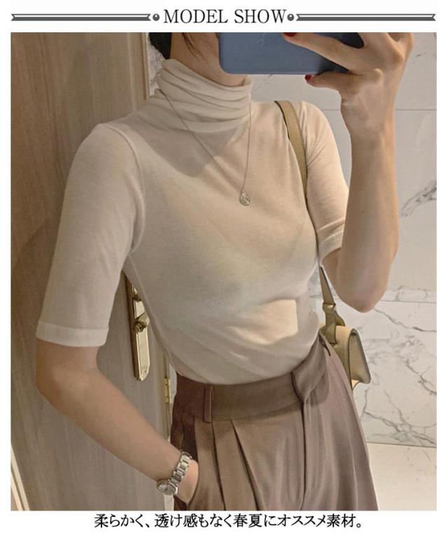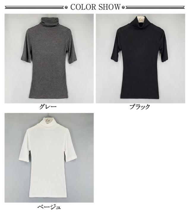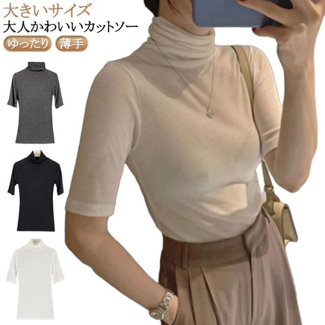 ハイネック 送料無料 タートルネック トップス フィット カットソー 半袖Tシャツ 春 夏 無地 ゆったり タートルネック シンプル 五分袖 レディース スリム 大きいサイズ 20代 30代 40代 OL ブラック グレー