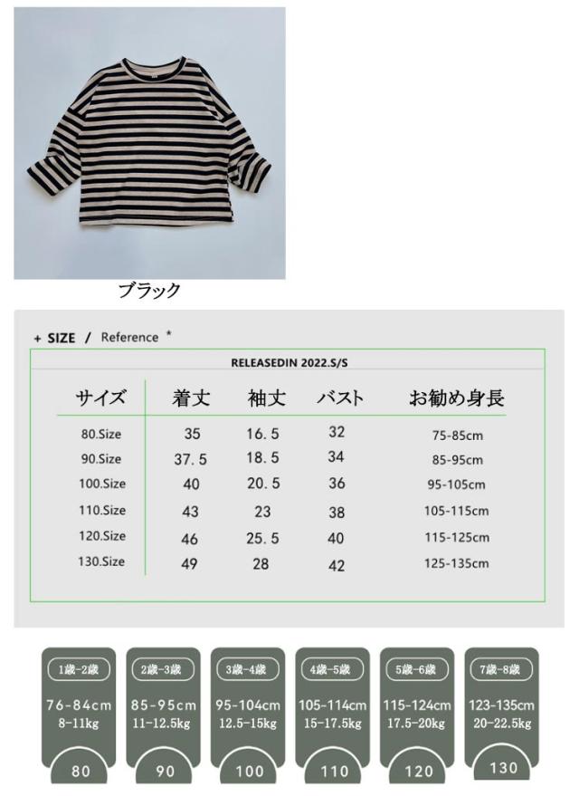 | 80cm 〜 130cm ・シンプルながらオシャレ感があってかわいいボーダートップスです。 ・柔らかい肌触りで着心地バツグンの生地(綿95% スパンデックス5%)を使用してます。 ・レギンスやパンツと合わせやすいので、普段着や保育園、幼稚園着として是非お使いいただければと思います。 | |