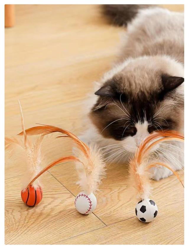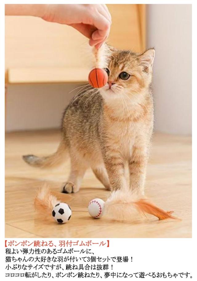 ねこ 猫おもちゃ 3個セット 羽根付き 羽根つきバウンドボール 狩猟 跳ねる猫ボール 猫ボール 天性 おもちゃ 弾力ボール 3個セット 3個セット 運動不足対策 ストレス解消 猫用フェザーボール