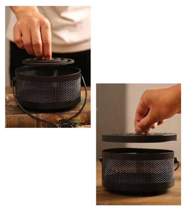 | お洒落 可愛いデザインの虫除け 蚊取り線香入れ! 風が吹いたり移動中などで少し傾けても、灰が溢れ出ません。 取っ手がありますので、移動もらくらく!お庭やアウトドアでも活躍してくれます。 使えやすさを考え、細部までこだわりを。スチール製だから丈夫で長持ち! 3点の足付きでしっかり安定します。重量もありますので、簡単にひっくり返りませんので安全です。 フタ付きなので小さなお子様やペットも安心。 | |