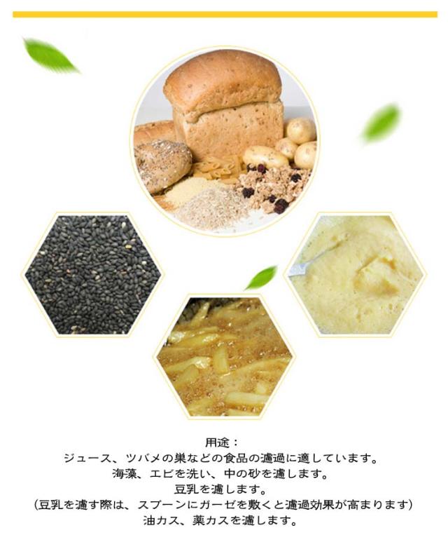 | ステンレス製ストレーナー 取っ手付き 、壁に掛けられることができ、収納便利。 違いサイズと 2 つのタイプをご用意。 用途: ジュース、ツバメの巣などの食品の濾過に適しています。 海藻、エビを洗い、中の砂を濾します。 豆乳を濾します。(豆乳を濾す際は、スプーンにガーゼを敷くと濾過効果が高まります) 油カス、薬カスを濾します。 ピーナッツ、メロンの種、唐辛子、胡椒などを揚げて塩を混ぜ、中の塩を濾します。 冬に野菜をすくい、手に水がかからないようにすることで、皮膚の乾燥、ひび割れ、凍傷の発生を予防することができます。 ワンタンすくい。 ゴマを洗い、中の細かい砂やほこりを濾します。 | |