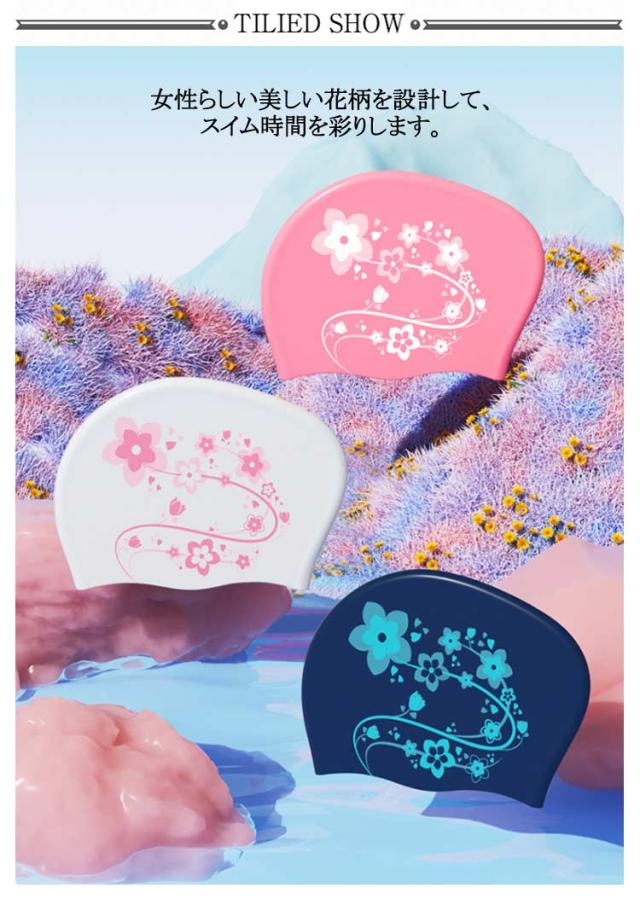 花柄 おしゃれ ウォータースポーツ サクラ スイムキャップ 水泳用帽子 水泳帽 ロングヘア 大人 上品 フィットネス水着 水着用 スイムキャップ 水泳 キャップ シリコン プール スイムアクセサリー ゆったり シンプル プレゼント ギフト 母の日 母