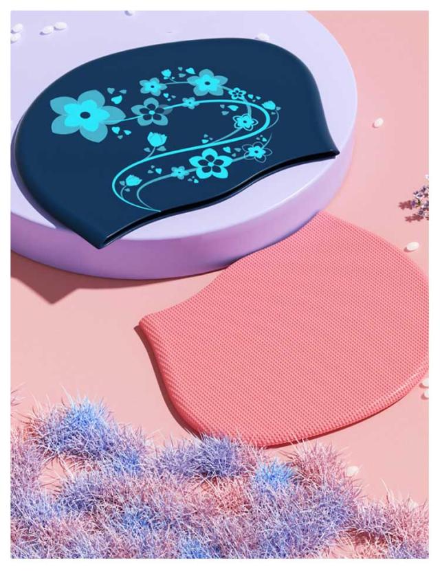 | 美しい花柄のシリコンスイムキャップ 伸縮性抜群なので、髪の毛が長い方でも、まとめて帽子にスマートに収まります。 シリコン素材を用いており、頭にピッタリとフィットするので、 水の抵抗を受けにくく、髪が濡れにくいので髪や頭皮を塩素から守ってくれます。 女性らしい美しい花柄を設計して、スイム時間を彩りします。 水中ウォーキングなどのトレーニングや、 キッズスイミングの付き添い、ベビースイミングなど、普段のプールで大活躍! | |