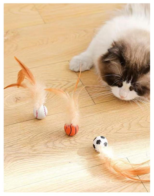 おもちゃ 羽根つきバウンドボール 3個セット 羽根付き 猫おもちゃ 弾力ボール 跳ねる猫ボール 猫ボール ねこ 3個セット 天性 3個セット 狩猟 運動不足対策 ストレス解消 猫用フェザーボール
