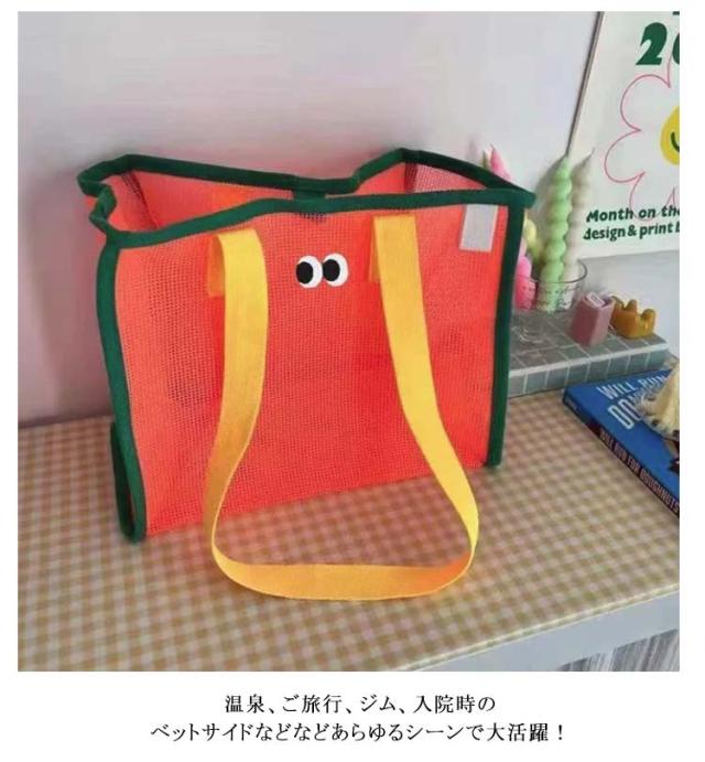 | メッシュで通気性がバツグンなメッシュトートバッグです。 化粧品、スキンケアからネイルケアまで細かな身の回り品も一緒に収納しちゃえます。 とても軽いので畳んで収納すれば旅行や出張などにも手軽に持って行けます。 温泉、ご旅行、ジム、入院時のベットサイドなどなどあらゆるシーンで大活躍! | |
