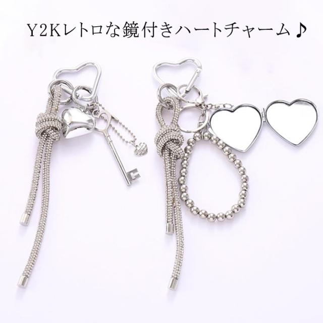 | Y2Kレトロな鏡付きハートチャーム♪ 鍵につけるはもちろん、バッグチャームとしてもいいですね☆ | |
