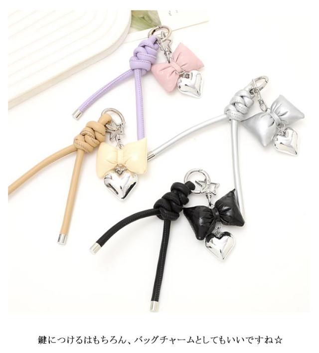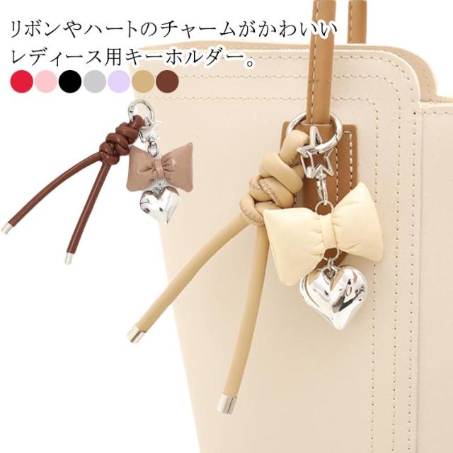| リボンやハートのチャームがかわいいレディース用キーホルダー。 鍵につけるはもちろん、バッグチャームとしてもいいですね☆ | |