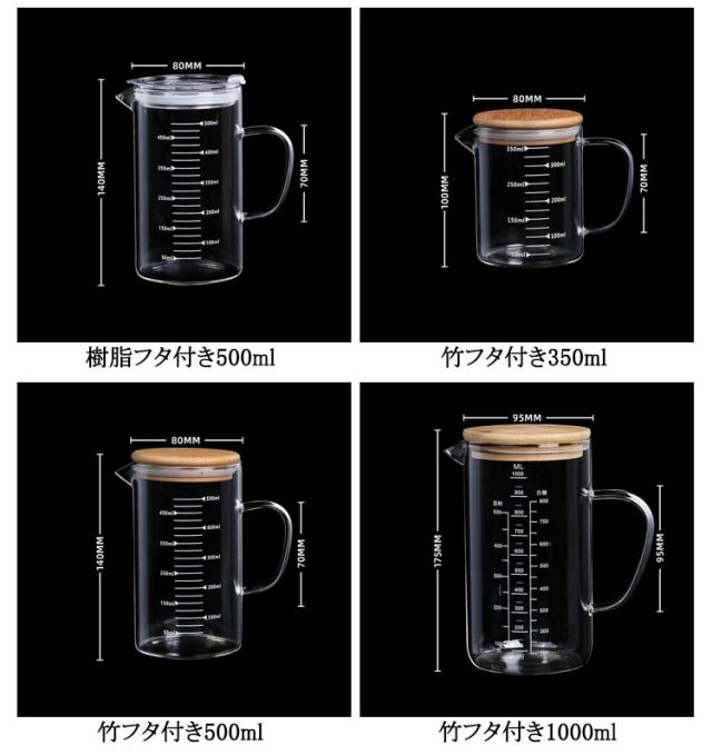 耐熱ガラス ガラス計量カップ 1000ml 計量カップ 500ml 大容量 計量カップ 2個セット 目盛り付き 蓋付き 1リットル 製菓道具 350ml 取っ手付き 電子レンジ対応 熱湯対応 ミルク 調理器具 クリア ギフト お手入れ簡単