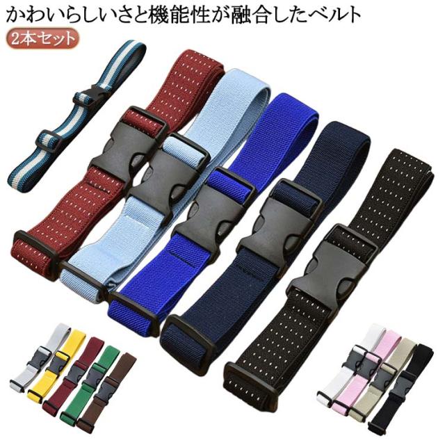 | かわいらしいさと機能性が融合したベルト2本セット スカート丈調節ベルトとしてはもちろん、男児女児のキッズベルトとしてもぴったりです。 約 2.5センチ幅が特徴です。 取り外しが簡単です。カチッと音がするまで差し込むだけでOK。プラスチック製なので金属アレルギーの方にも安心です。 長さも約44センチから80センチまで段階的に調節が可能なので、成長期のお子様には重宝します。 | |