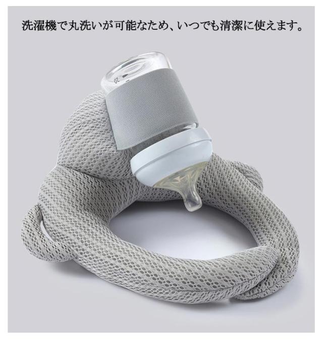 | 【授乳クッション】【通気性メッシュ素材の哺乳瓶ホルダー】 哺乳瓶が固定できるポケット付きで、ハンズフリーで授乳できるクッション 抱っこ授乳で腕が疲れたときや、双子・三つ子で授乳のサポートが必要な人におすすめです。 長いミルクの時間から解放され、ミルクタイムを家事や仕事の時間に使えるので余裕があると子育てを楽しめます! 洗濯機で丸洗いが可能なため、いつでも清潔に使えます。 | |