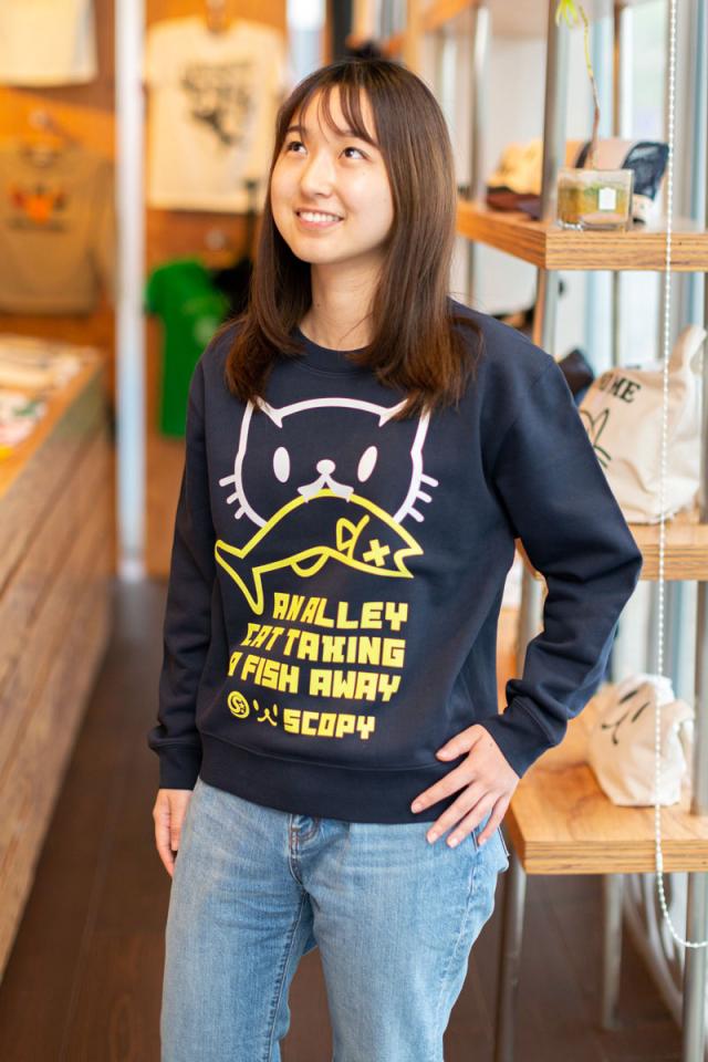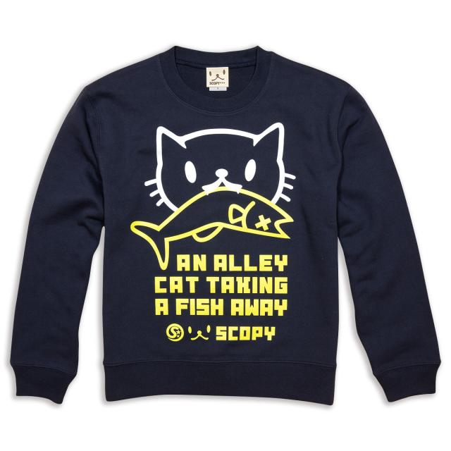 長袖 トレーナー お魚くわえたどらねこさん - ネイビー SCOPY スコーピー