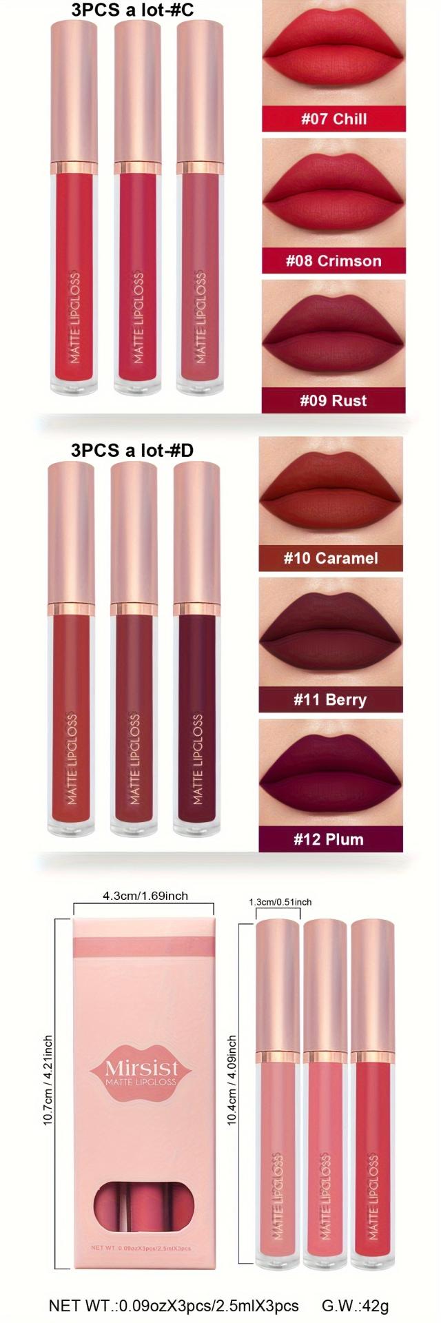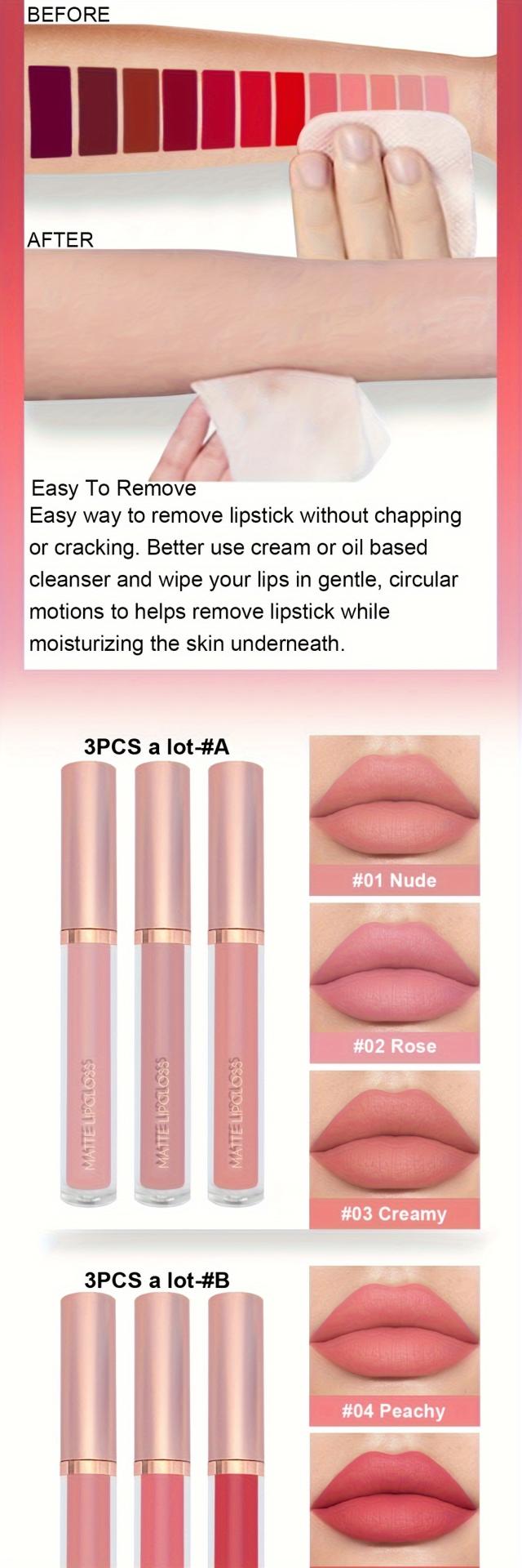 3つのマットリップスティックリップグロスセット、防水でノンスティックカップのリキッドリップスティック、マットなベルベットリップグレースリップスティックセット、リップステインリップケアは、簡単に色落ちしません。女性へのバレンタインデーの贈り物、母の日のギフト