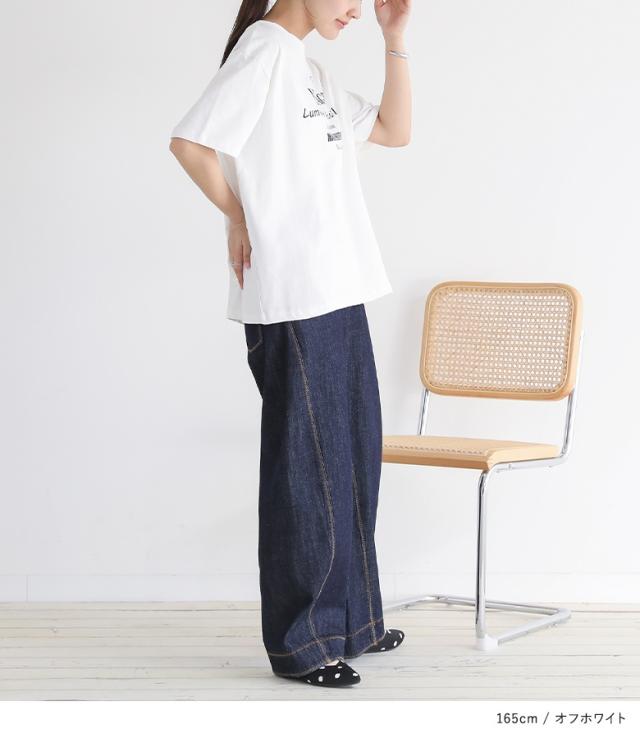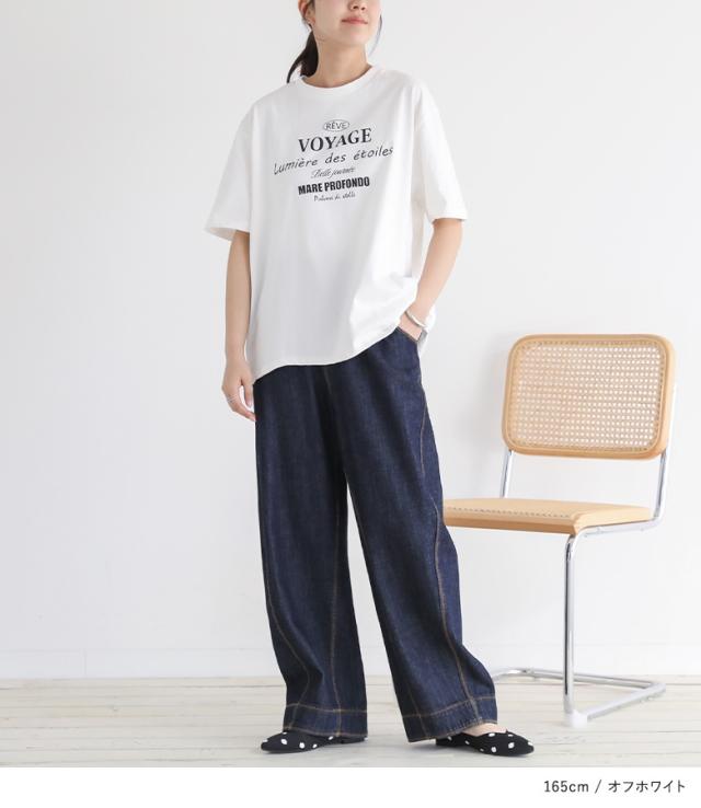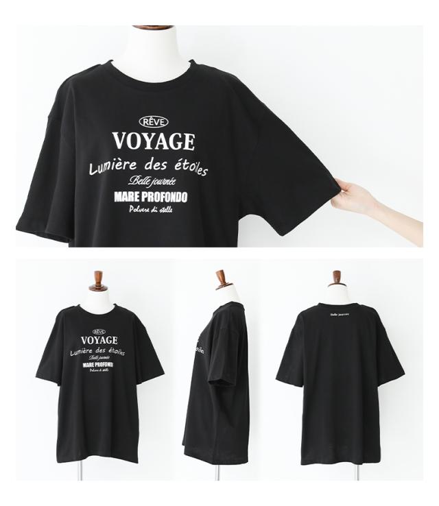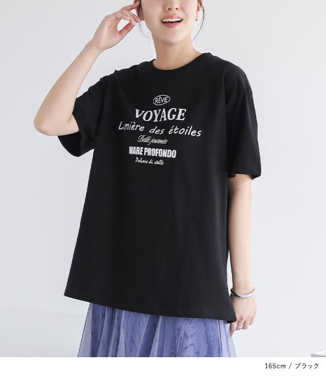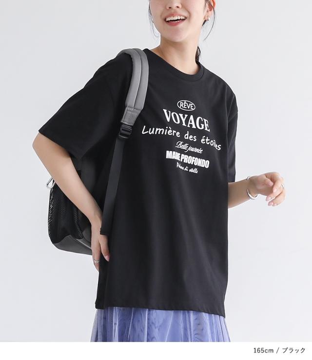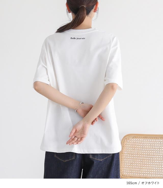 『ロゴプリントビッグシルエットTシャツ』※メール便可※【10】[Tシャツ レディース トップス 半袖 カットソー ロゴ ロゴT シンプル カジュアル 着回し 綿 コットン 無地 袖長め バックプリント 夏]