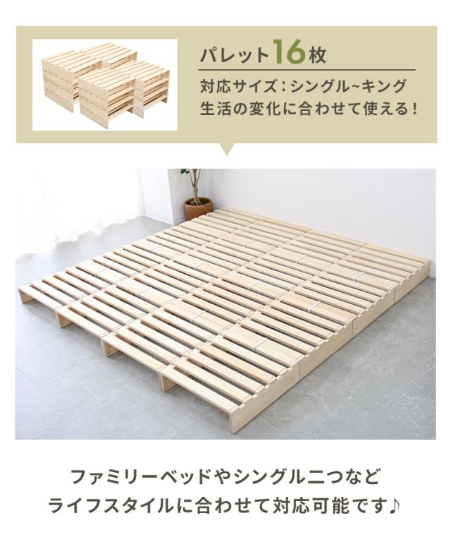 べッド パレットベッド 木製 4枚 8枚 16枚お掃除ロボ対応 ファミリーベッド カスタム パレット シングルベッド セミダブルベッド ダブルベッド 天然木パイン S SD D シングル セミダブル ダブル キング ファミリーベッド すのこベッド ベッドフレーム ロータイプ ローベッド すのこ おしゃれ 連結ベッド スノコベッド 頑丈 丈夫 湿気 カビ 除湿 対策 スノコマット マットレス イス 軽量 布団 完成品 分割式 組み換え自由 軽量 ステージベッド 宮棚 一人暮らし 通気性 連結パーツ付き 無塗装 無垢材 天然無垢 天然無垢材 組み立て簡単 敬老の日 母の日 父の日 ギフト 誕生日 プレゼント 誕生日プレゼント 結婚祝い 福袋 メンズ レディース 男性 女性 人気 おすすめ 送料無料