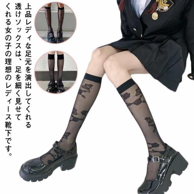 3足セット 送 ハイソックス レディース ソックス 花柄 菱形柄 水玉柄 斜め水玉柄 ロリータ風 下着 透かし インナー レース 薄手 夏用 履きやすい 伸縮性抜群 下着 インナー レース 薄手 夏用