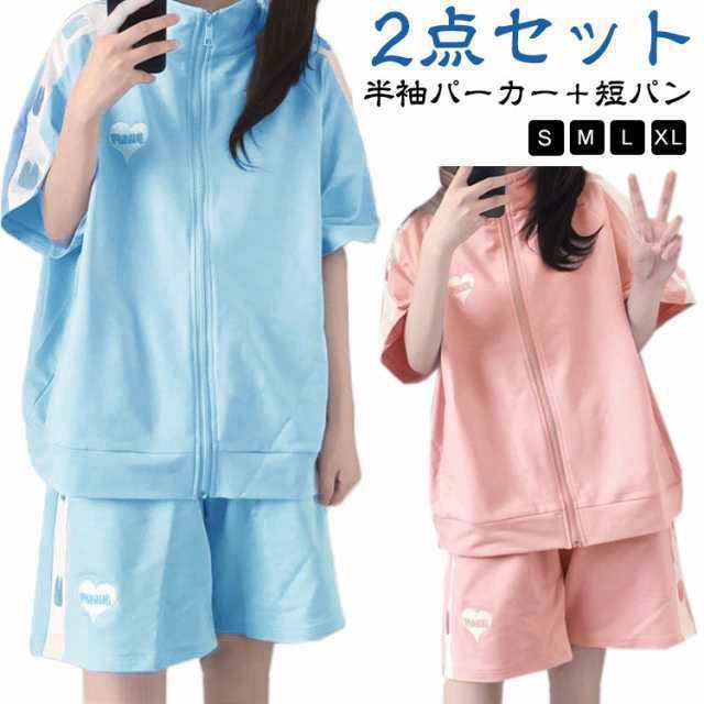 ジャージ 上下セット レディース 2点セット かわいい 春夏 半袖 ゆったり 女子 服 学生 高校生 前開き トップス パーカー ショートパンツ セットアップ 薄手 地雷系 春 秋 夏 可愛い 通学 通勤 衣装 おしゃれ カジュアル ダンス 女装 S-XL