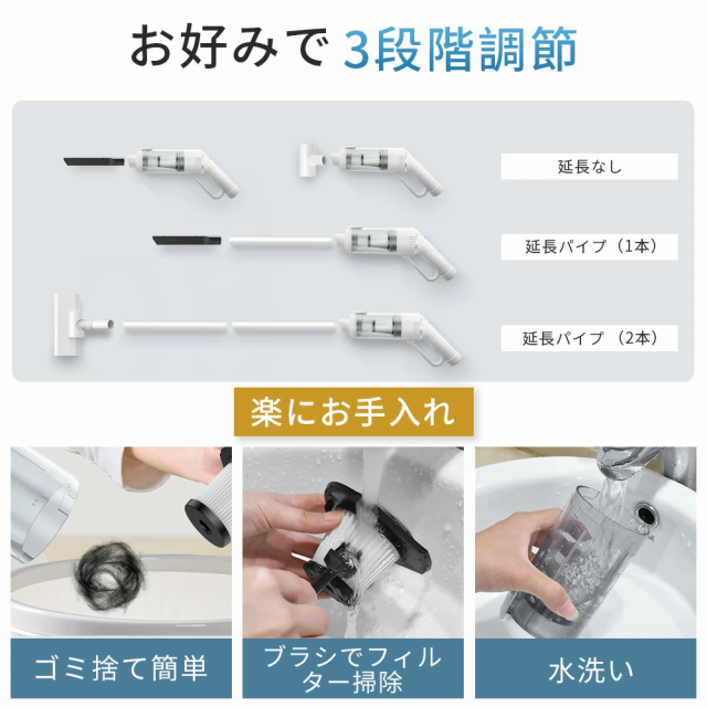 掃除機 コードレス サイクロン式 強力吸引 軽量 ハンディ コードレス掃除機 そうじき スティック 5重濾過 5種類ノズル usb すき間ノズル 充電式 静音 2way 一人暮らし コードレスクリーナー HEPAフィルター コンパクト 車掃除 お手入れ簡単