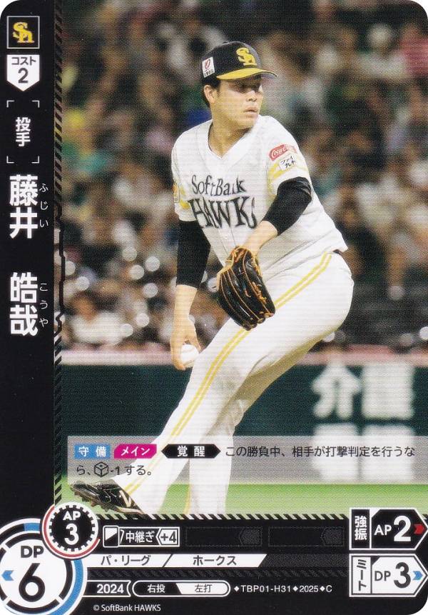 ドリームオーダー TBP01-H31 藤井 皓哉 福岡ソフトバンクホークス (C コモン) プロ野球カードゲーム 球団ブースター 制覇せし鷹軍