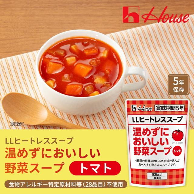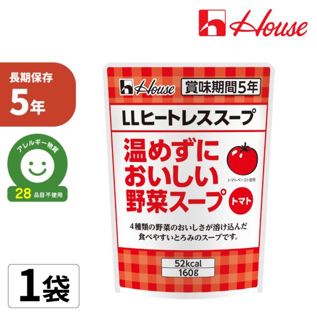 レトルトスープ LLヒートレススープ 温めずにおいしい野菜スープ トマト 160g 1袋 メール便6袋まで トマトスープ 非常食 5年保存 防災食 備蓄品 ハウス食品