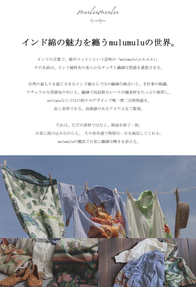 インド綿ならではの繊細な風合い、手仕事の刺繍にフォーカスを当てたantiqua発のブランド『mulumulu(ムルムル)』