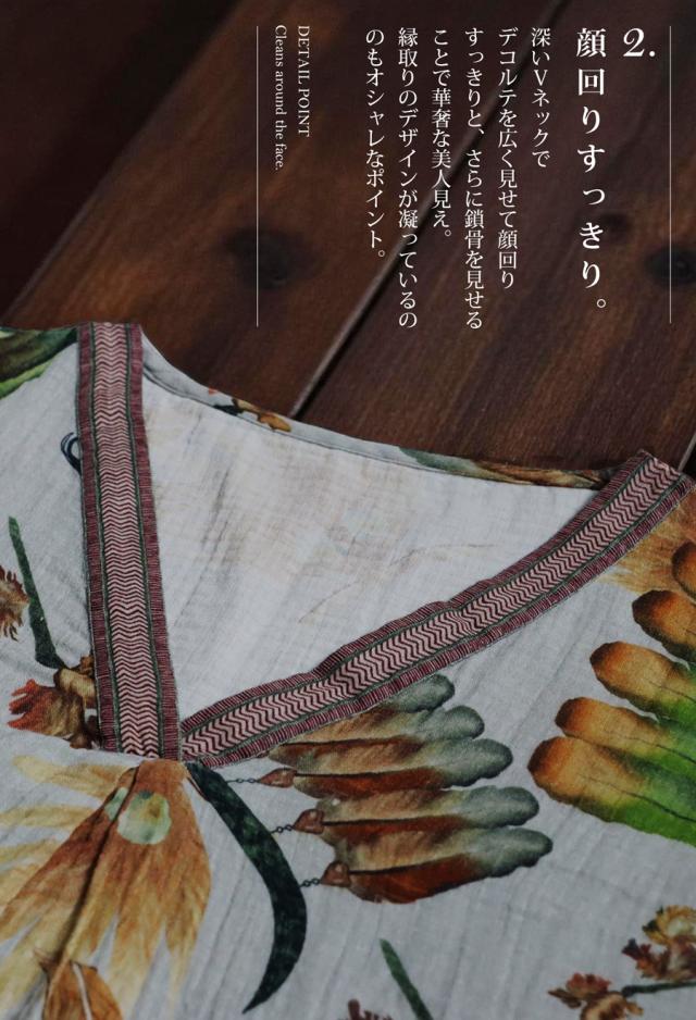 華やかな柄ながら、色味は落ち着いたトーンでまとめられており、派手すぎず上品な仕上がり。