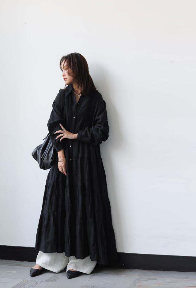 しっかりとしたシアー感がありながら、やわらかく落ち感もあるため、広がりすぎない大人のティアードシルエットに。