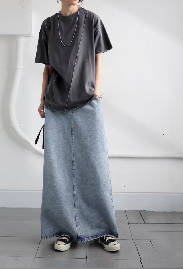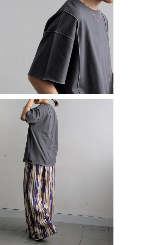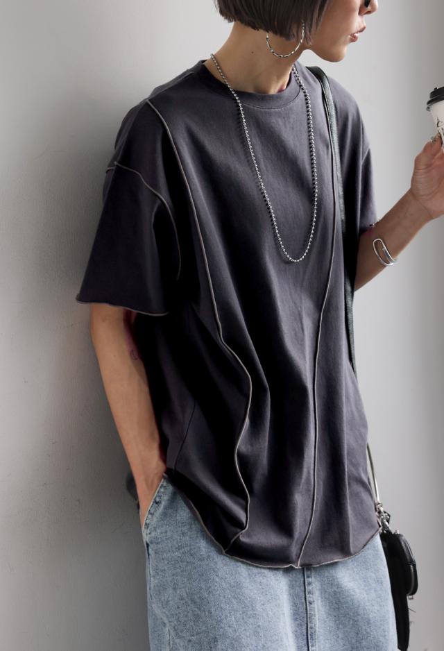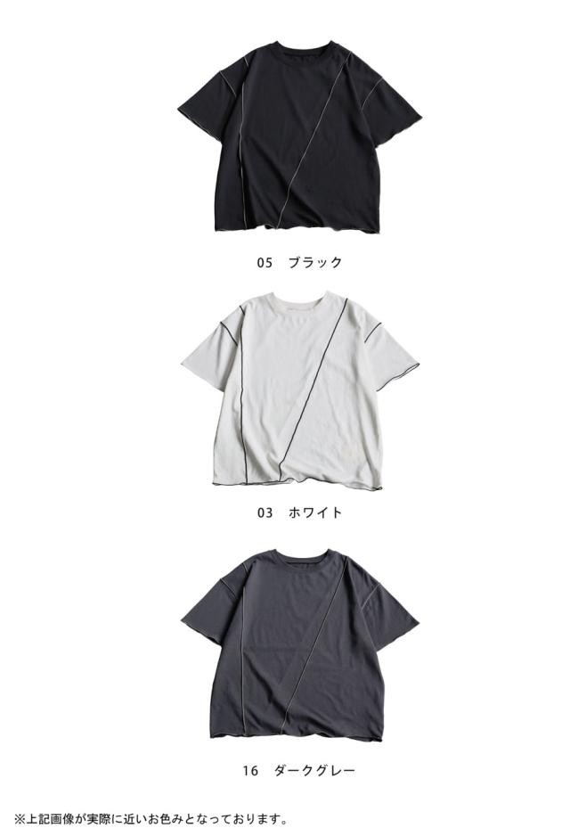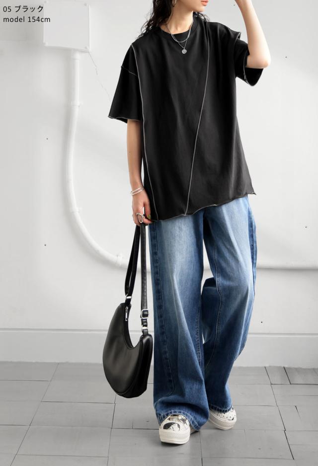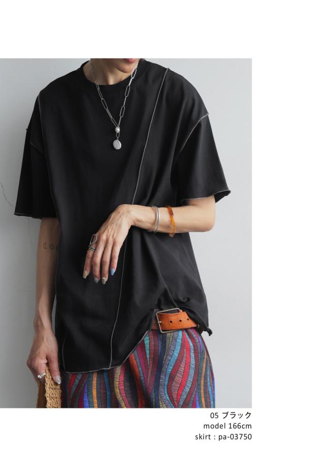 ay-00075 メロウステッチ トップス 綿100% 綿 コットン 配色 メロウ デザイン ゆったり 体型カバー お尻が隠れる 着回し 大人カジュアル 春 夏 デザインTシャツ