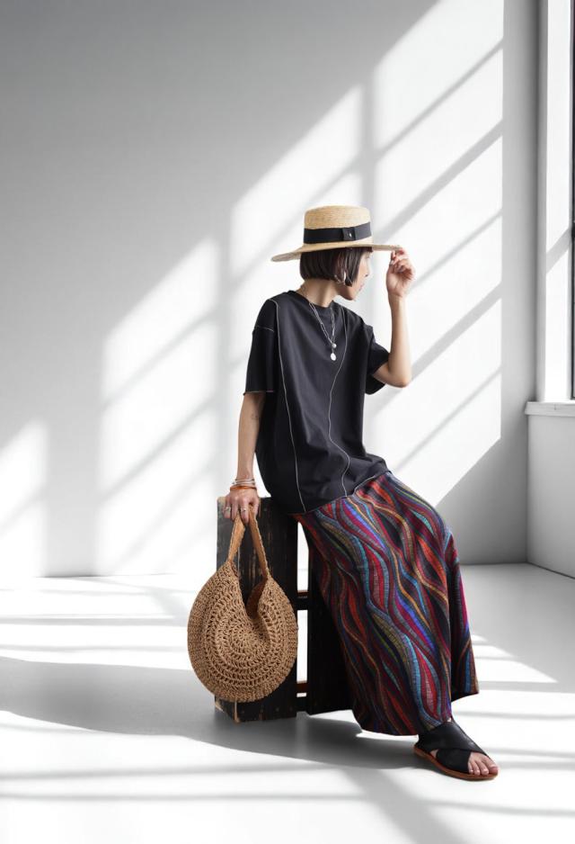 身体のラインを拾いにくいゆるシルエットと、お尻がしっかり隠れる丈感で、自然に体型カバー。