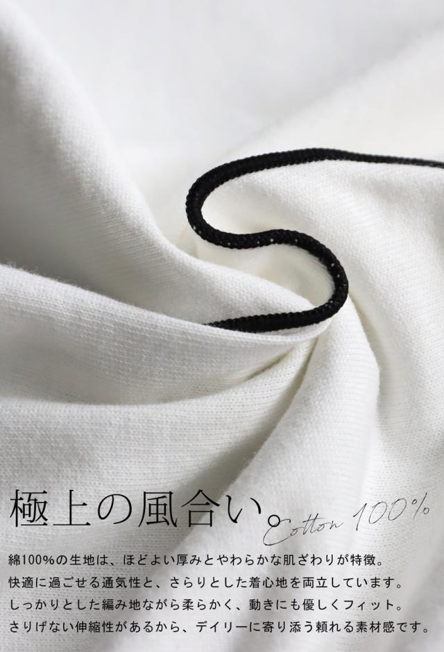 綿100%のしっかりとした天竺素材を使用し、さらりとした肌ざわりと程よいハリ感が魅力。