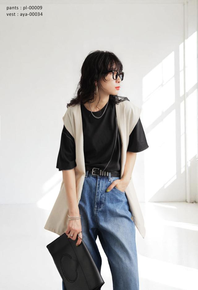 首元は詰まりすぎないクルーネックで、ラフな雰囲気を残しながらも大人の抜け感を演出します。