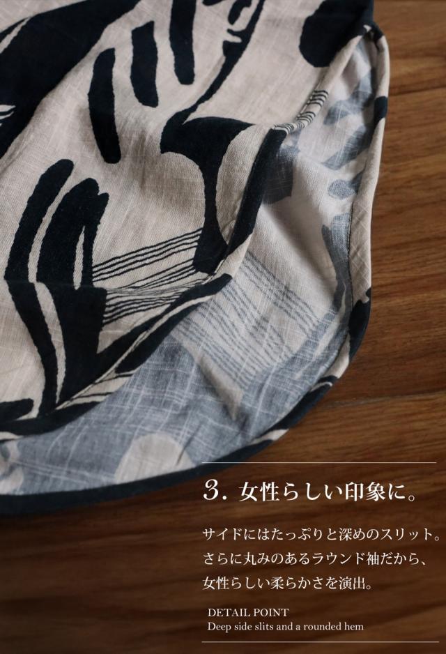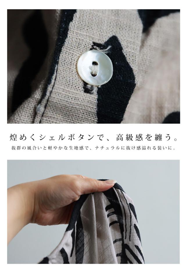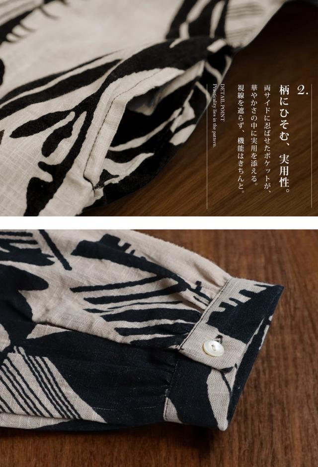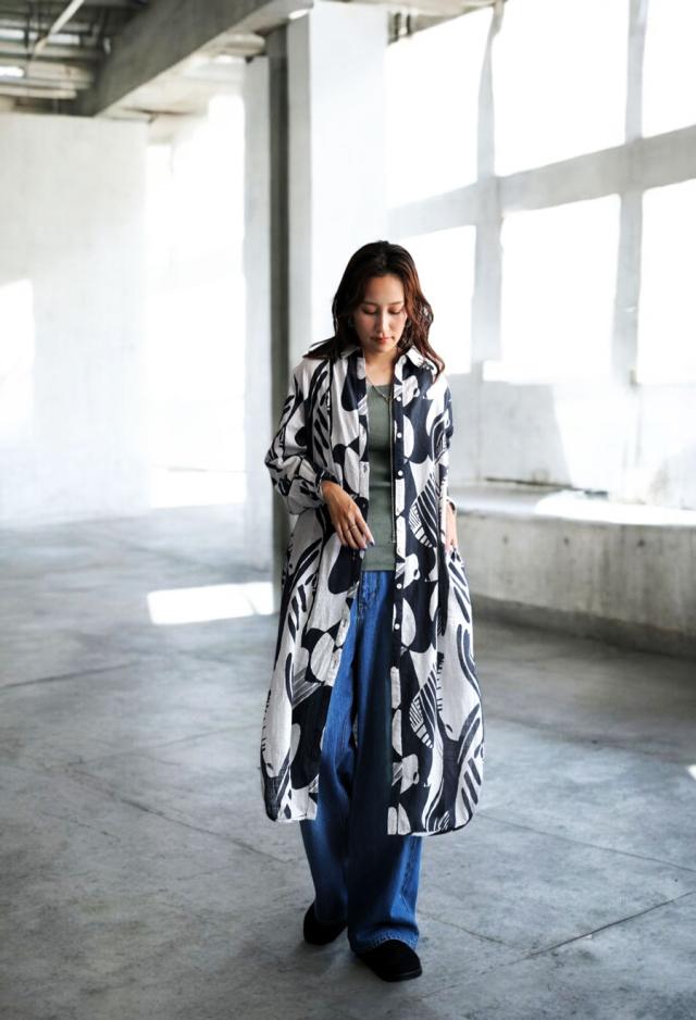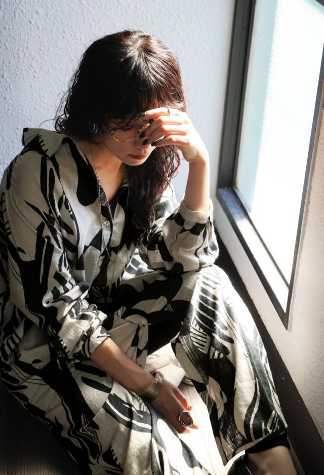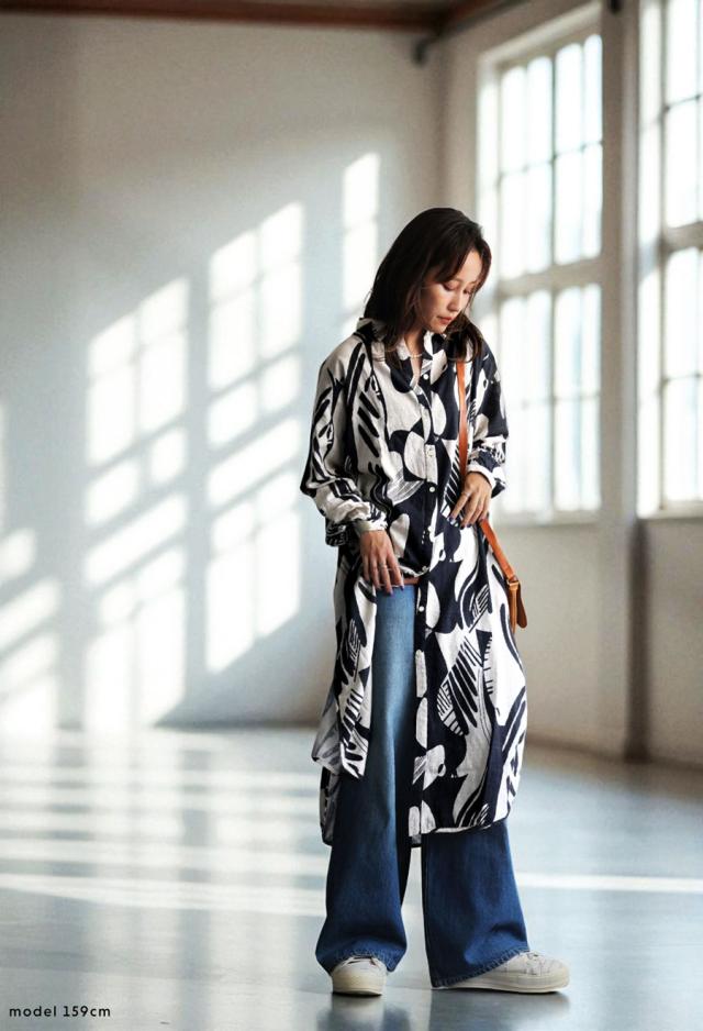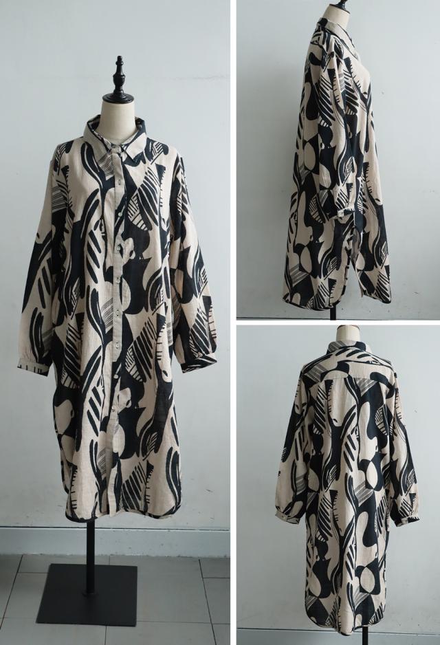 まるで筆で描いたような、静かに存在感を放つモノトーン柄が印象的なシャツワンピース。