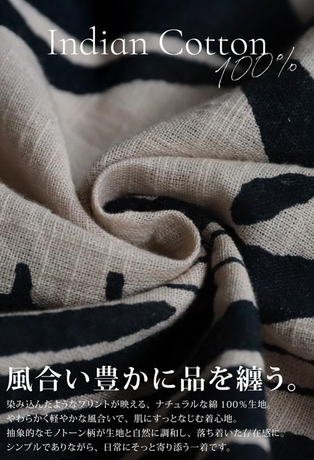 モノトーン柄シャツワンピース レディース インド綿 送料無料・再入荷 (500)メール便可