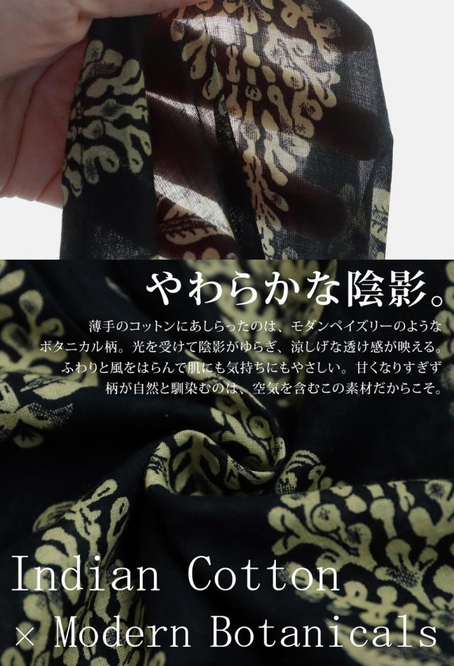 素材には、空気をふくむようなやわらかさと、さらりとした肌触りが特徴のインド綿(コットン)を使用。