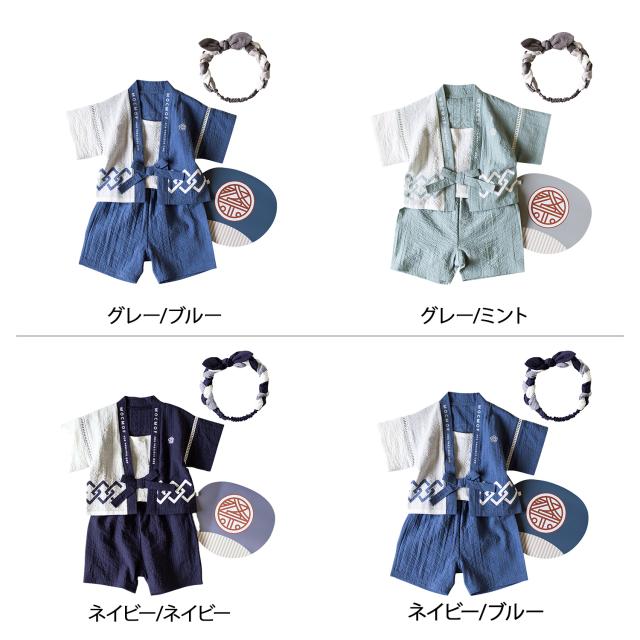 mocmof モクモフ ベビー服 ヘアバンド 2点セット 子供服 和服 髪飾り ヘアアクセ ベビー キッズ こども 赤ちゃん 男の子 女の子