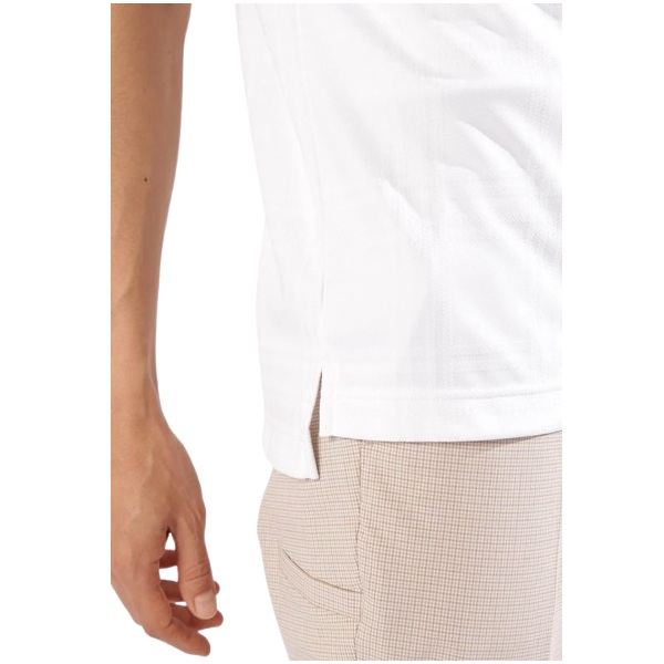 ジャガード織りで落とし込んだダブルチェック柄の半袖プルオーバー。柔らかな風合いにストレッチ性があって動きやすく、他にもサラリとした爽やかな着用感をキープする吸汗速乾性と紫外線カット効果を発揮するUVカット機能が暑い日のゴルフシーンを快適にサポートします。締め付けすぎない程よいフィット感でスッキリと着こなせます。単色で仕上げたシンプルな中にも立体で表現した柄が品のある優しい雰囲気を演出します。カラーはブラック・ホワイトに加えて、レッドを公式オンライン限定で展開中です。