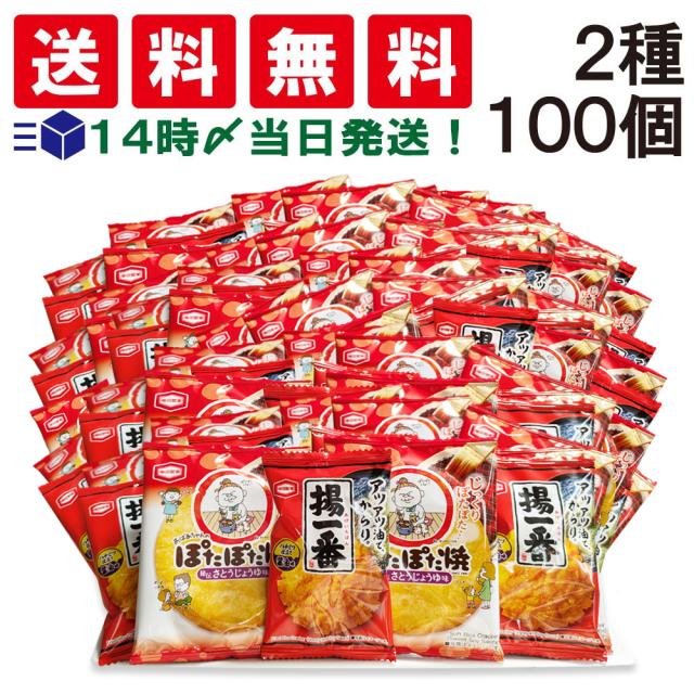 【 送料無料 】亀田製菓 ミニ せんべい 個包装 おつまみ 詰め合わせ アソート セット 2種 計100個( ぽたぽた焼 揚一番 )