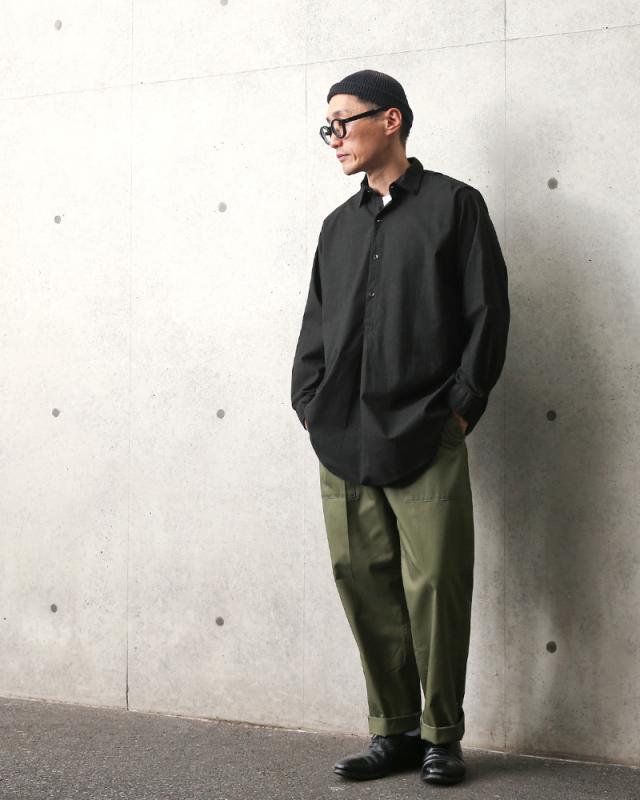 元々はオリーブの生地ですが、染め職人に丁寧にBLACK染めしていただきました。 抜群の合わせやすい雰囲気に仕上がっています!