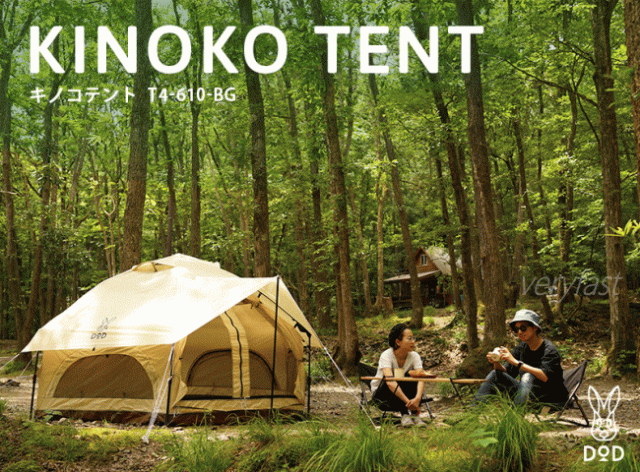 DOD テント キノコ型テント 寝室用テント ワンタッチ構造 組み立て 片付け 簡単 ファミリーキャンプ向け コンパクト収納 2〜3人 キノコテント T4-610-BG ベージュ メーカー直送