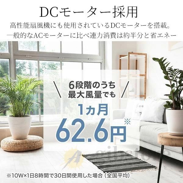 DCモーターは微量な電流までコントロールに優れ、電力も無駄なく活用して運転が可能。静音、省エネ、風量調節6段階を実現しています。