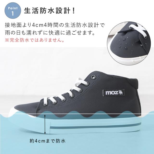 レインスニーカー レインシューズ レディース スニーカー ハイカット ローヒール ぺたんこ 痛くない 柔らかい 長時間 疲れない 歩きやすい 走れる おしゃれ きれいめ かわいい 靴 軽量 レイン 防水 雨靴 雨 雨の日 台風 梅雨 黒 ブラック 通勤 仕事用 立ち仕事 MOZ モズ
