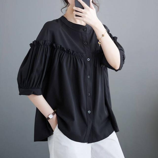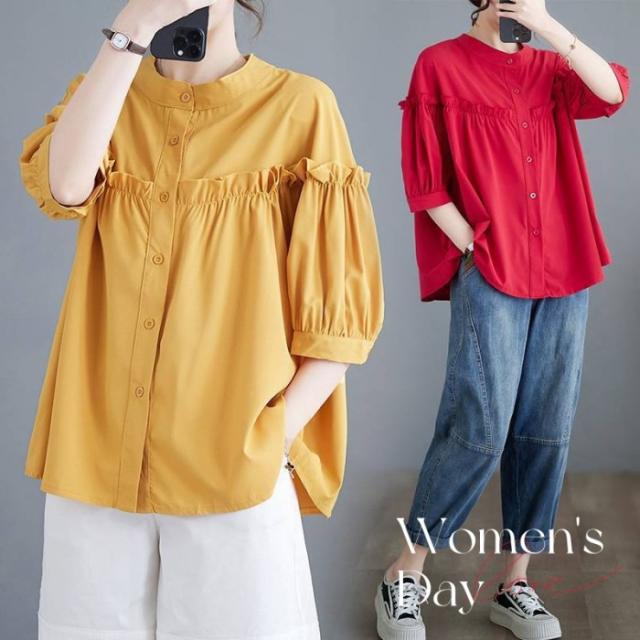 シャツ ブラウス レディース トップス チュニック 半袖 無地 夏 薄手 上品 カジュアル オシャレ 40代50代 新作