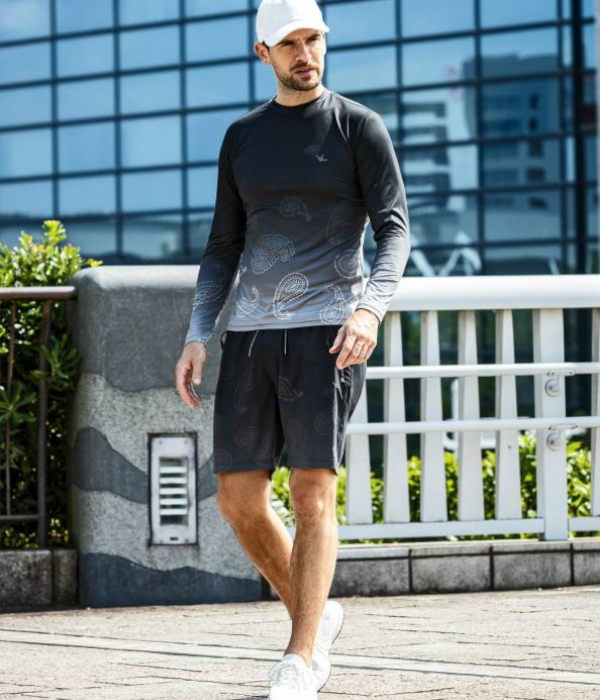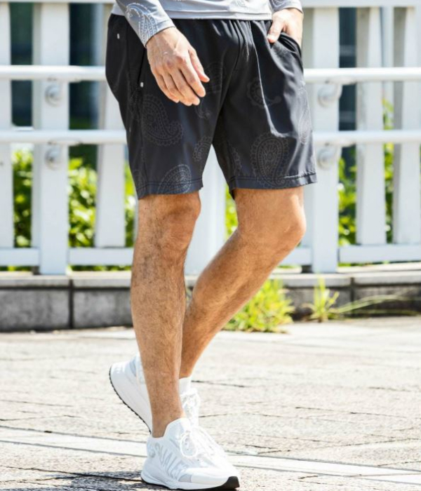 軽量かつ高いストレッチ性でウォーキングやトレーニングなどアクティブなシーンに活躍するシリーズ。ホワイトはカモフラ柄、ブラックはペイズリー柄の2色を用意しています。